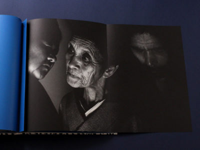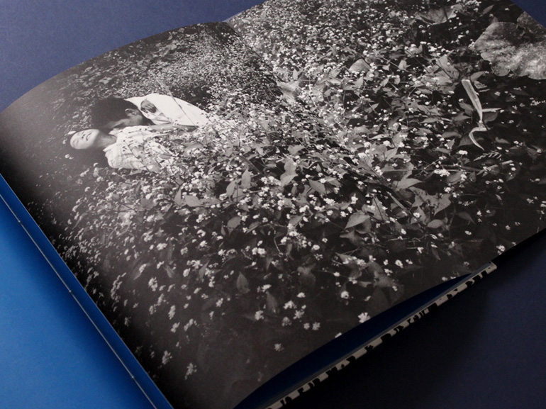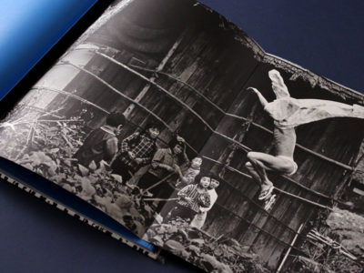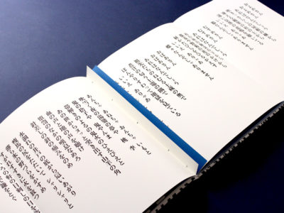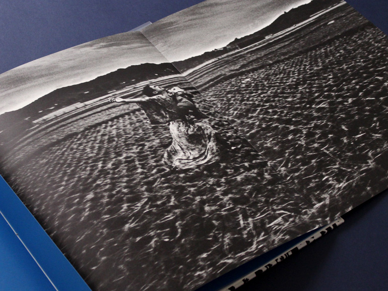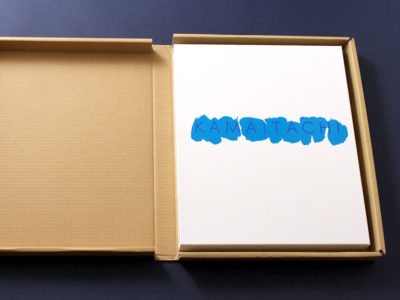 「鎌鼬」は、東北の霊気を宿す伝説上の生きもの。農村に出没し、出会い頭に人を鋭く切り裂くという。「鎌鼬は土の精であり、百姓にだけ現われたファントムであったのか。しかし、この見えない飛ぶ刃はなんと鋭く、空を切り、肉を切ったことだろう」(瀧口修造 序文より)。深いブルーの扉型のページを開くたび、 鎌鼬の生息する劇場に誘い込まれる。