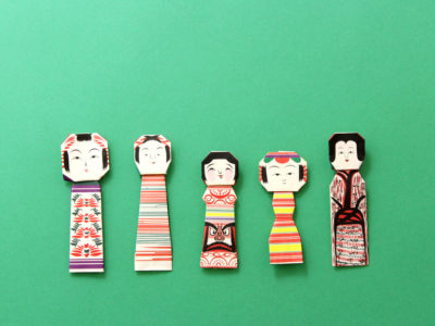 東北地方で子どもの玩具として育まれてきた「こけし」をモチーフにしたポップな折り紙カードブック。