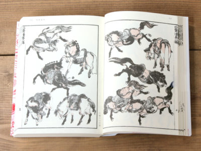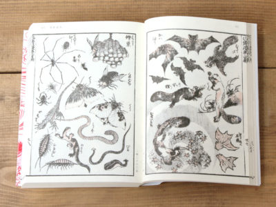 第二巻の「森羅万象」では、動物、植物、名所・名勝といった風景から雨や風といった気象など、主に自然を描いた図版を収録。「鳥獣蟲魚」「山川草木」「波浪流水」「天地造化」の4つのカテゴリーで構成。海のものも山のものも、そして象や虎といった珍獣や、夢を食べると言い伝えのある獏のような霊獣まで、ありとあらゆる生きものや、山・川・草花・木、そして全国各地の風景、名勝を集めている。北斎が描いた「水」の表現や雨や風、昼から夜への移り変わりといった「目には見えない流転する現象」を描いた図も収録。必見の筆踊る森羅万象!