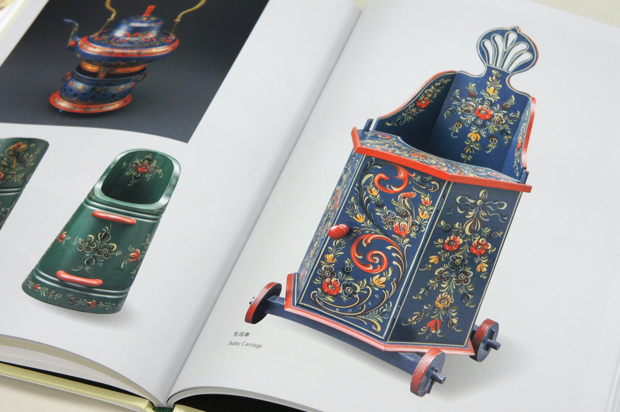 その村に伝わる伝統工芸のヒンデローペンは、木製の家具や小物に色鮮やかな彩色を手で施したもの。花・草・唐草模様をベースにした絵柄は心を和ませます。