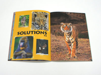 15問の美しいパズルがあなたの心をつかんで離しません。スタートは、枠線に囲まれた1つのピースから。約100枚ものステッカーの中から、動物たちの色、かたち、模様をヒントにぴったり合うものを探しましょう。シールを貼り終えると、美しい野生動物たちの姿が完成します。収録されているのは、獲物を狙うヒョウ、子連れのアフリカゾウ、今まさに飛び立とうとするハクトウワシ、熱帯雨林に棲む色鮮やかなヤドクガエルなど。大自然が生み出した動物たちの多様性の豊かさが伝わってきます。
