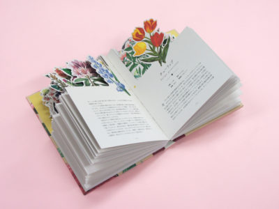 花のイラストに沿って全ページ型抜き加工が施されています。