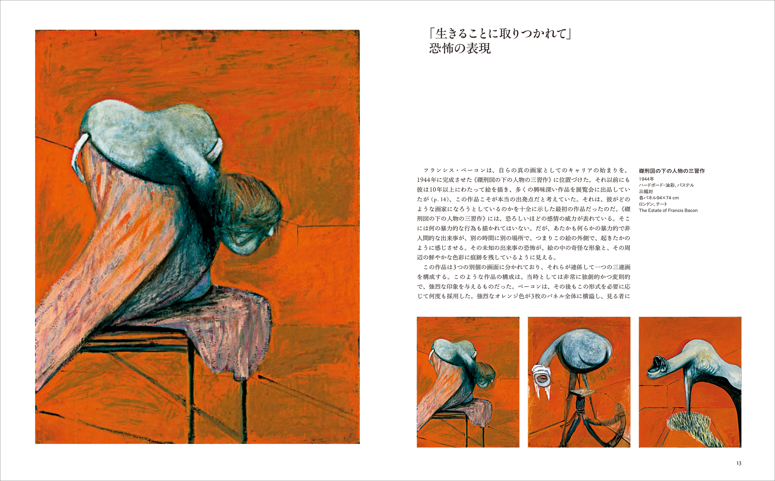 本書では、ベーコンのエロチックで不安をかき立てるような、忘れることのできない作品群を紹介している。それらは斬新で、折に触れて模倣され、分析され、そして何よりも見る者の感情をあおってきた。