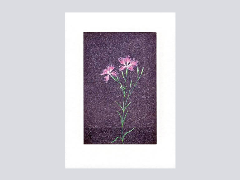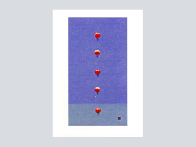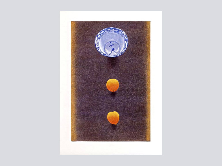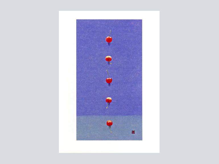 淡く深くやさしい色合いで描かれた画のモチーフは、小石と桜の花びら、壺と栗、椀とさくらんぼなどなど。日本の風土が育んだ独特の美しい間合いと、豊かな色彩に想像力がかき立てられます。