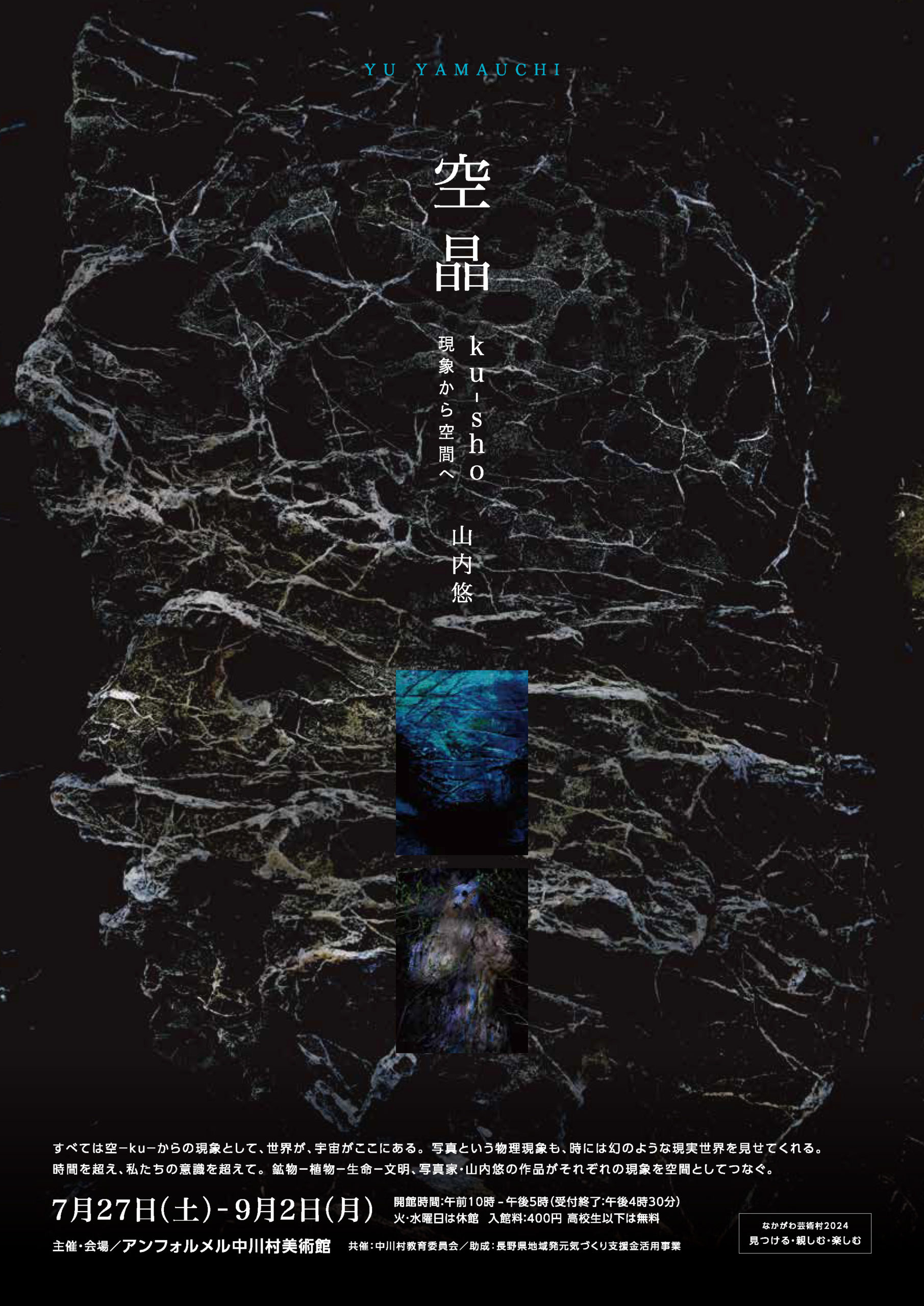 アンフォルメル中川村美術館(長野)にて、山内悠さん個展「空晶 ku-sho 現象から空間へ」が開催されます。