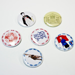 ・今和次郎 缶バッジ (A:TIGER / B:家 / C:照明 / D:紳士 / E:女性と旗 / F:着物女性)